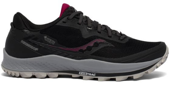 Цепкий профиль подошвы Saucony Peregrine идеально подходит для бездорожья: он обеспечивает хорошее сцепление с рыхлым грунтом без застревания в нем камней. Сплошная гибкая пластиковая пластина в межподошве и (довольно мягкий) подносок защищают от камней. Благодаря небольшому перепаду (4 мм), ступня остается на земле, что защищает ее от скручивания. Тем не менее, Peregrine имеет удобную амортизацию. Приятно ходить даже по твердой поверхности, жесткие резиновые шипы PWRTRAC на подошве при каждом шаге не ощущаются (и их не слышно). Это обеспечивает пена межподошвы EVA «PWRRUN» — она почти гелеобразная, мягкая и реактивная. Опорных элементов нет, качение нейтральное. Посадка средней ширины, обувь сидит хорошо, но не слишком плотно на ноге.